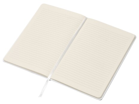 Блокнот формата А5 в твердой обложке со скруглёнными углами и блоком в линейку на 80 листов. Благодаря скрытой магнитной ленте на блокноте можно легко и надежно закрепить металлическую ручку. Зона с магнитом обозначена тиснением в форме ручки.