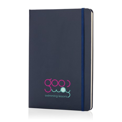 Блокнот для записей Basic в твердой обложке формата А5 на резинке с ляссе. 72 страницы, линованная бумага кремового цвета, плотностью 70 г/м2.