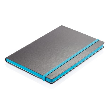 Стильный блокнот формата А5 в твердой обложке. 80 страниц, бумага плотностью 80 г/м2. цветной срез и цвет резинки в тон.