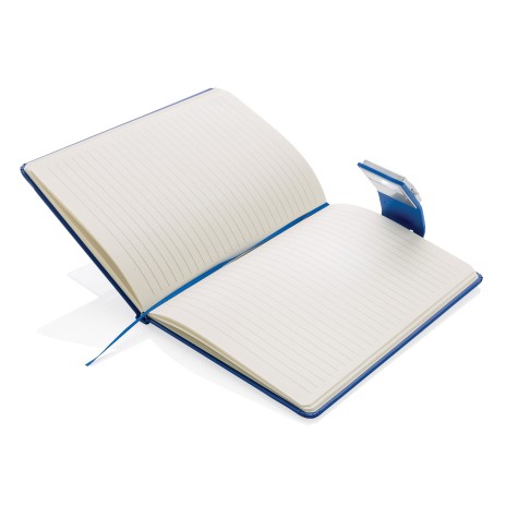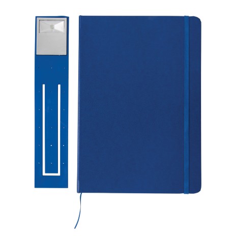 Стильный блокнот формата А5 в твердой обложке дополнен удобной закладкой с интегрированным светодиодным фонариком. 72 линованных листа изготовлены из приятной кремовой бумаги плотностью 70г/ м2.