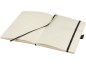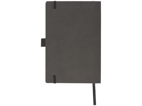 Блокнот Revello. Мягкий на ощупь, гибкий блокнот (размер А5 для ориентации) со встроенной эластичной застежкой, закладкой, петелькой для ручки и кармашка для документов на внутреннем форзаце сзади. 80 листов кремовой линованной бумаги (80г/м2). Упакован в черную коробку-рукав. Кожа ПУ.
