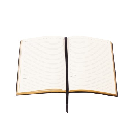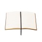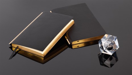 Сочетание черной гибкой фактурной обложки, золотистой металлической планки и золотого среза смотрится в меру дорого. Блок из плотной тонированной бумаги в 256 страниц представляет достаточно места для записей.