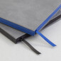 - Основной материал - практичный "велюр" серого цвета, контрастная (цветная) полоса из к/зама в корешке;