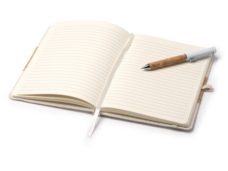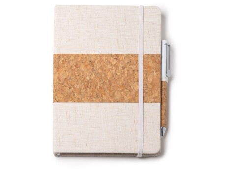 - Набор блокнот с ручкой из пробки и хлопка "Beret", natural