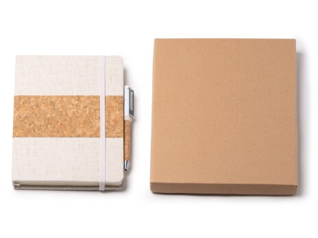 Набор блокнот с ручкой из пробки и хлопка "Beret", natural