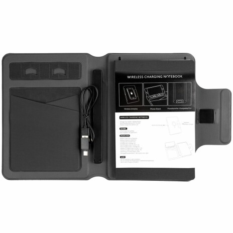 - Органайзер с блокнотом и аккумулятором Oiro, черный
