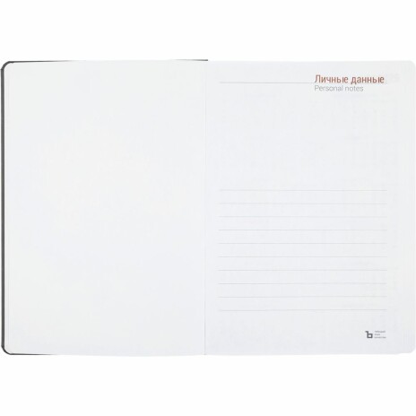Ежедневник с твердой обложкой, выполнен из материала Latte, темно-серый ЕЕ, дополнен ляссе в цвет обложки.