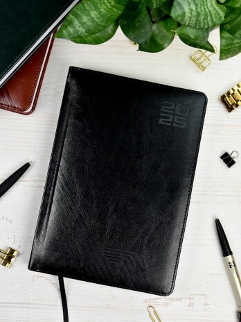 Ежедневник с твердой обложкой с поролоном из искусственной кожи Sarif, дополнен капталом и ляссе в цвет ежедневника.