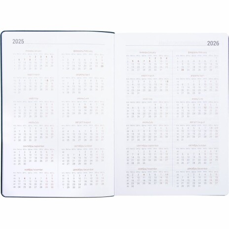 Гибкая обложка ежедневника выполнена из материала Latte, синий НН. Внутри корешка — специальное место для крепления ручки размером до 15х0,9 см.