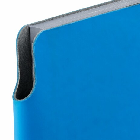 Ежедневник с гибкой обложкой выполнен из материала Soft Touch Ultra, голубой JJ и серого Latte (внутренняя часть обложки).