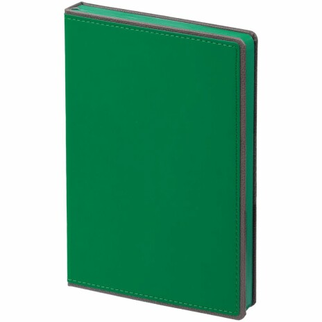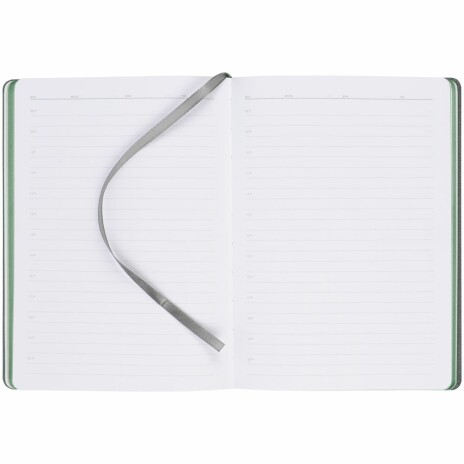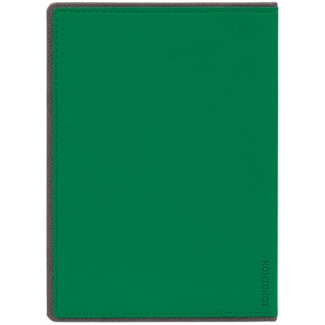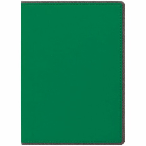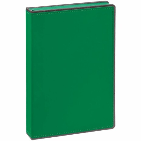 Ежедневник с твердой обложкой, выполнен из материалов Soft Touch Ultra, зеленый FF и La Fite, серый СС. Ляссе темно-серого цвета.
