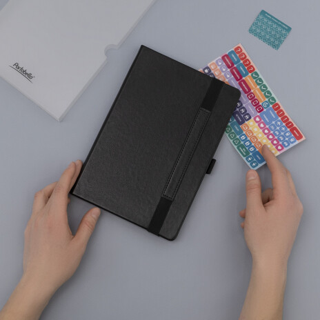 Вертикальная резинка-фиксатор с вставкой из ПУ-материала обложки и петелькой под ручку