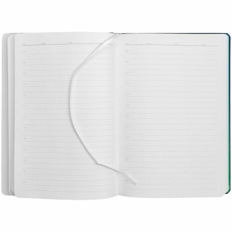 Ежедневник в твердой обложке из картона, дополнен ляссе белого цвета.