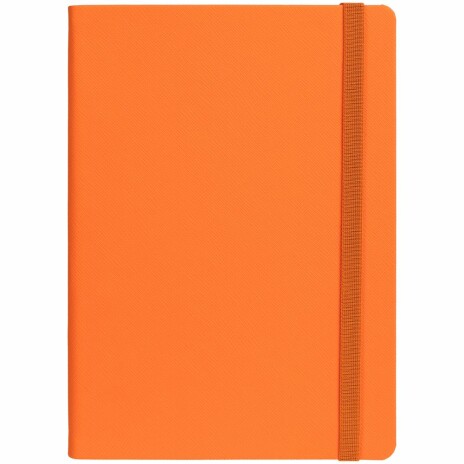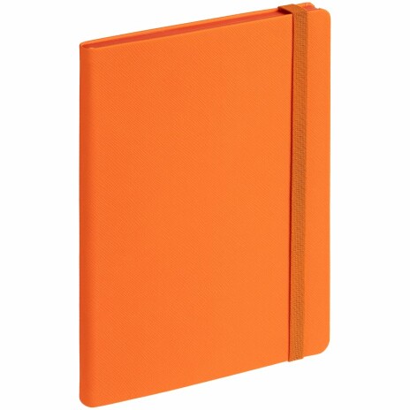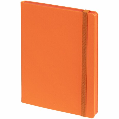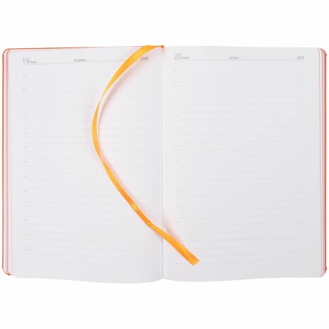 Ежедневник с твердой обложкой выполнен из материала Nice Touch, оранжевый ОО, и дополнен резинкой шириной 1 см и ляссе оранжевого цвета.