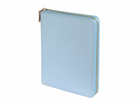 Деловая нежность! Вот как можно охарактеризовать этот очаровательный зефирно-голубой ежедневник. Большое отделение на молнии вмещает в себя и сменный блок для записей на кольцевом механизме, и отделения для визиток и ручки. В этом бизнес-аксессуаре поместятся и дополнительные документы и смартфон.