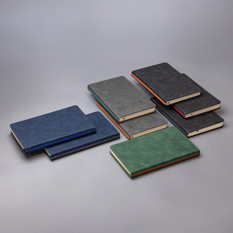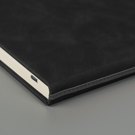 - Ежедневник недатированный Muse,черный, формат А5, с декоративной серой полосой, блок в линейку