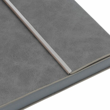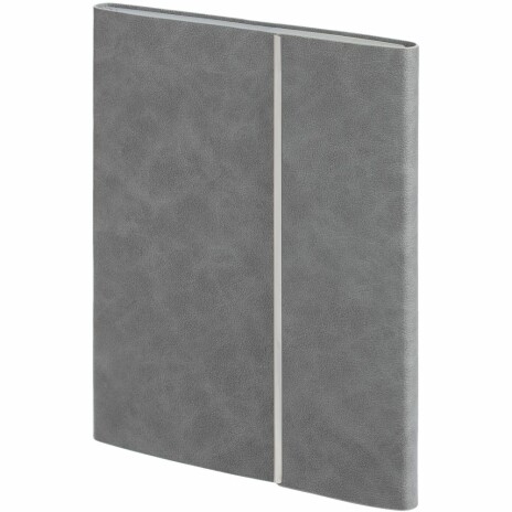 Ежедневник с гибкой обложкой, клапаном на магните и металлической отделкой клапана. Выполнен из материала Petrus, серый СС, дополнен серым ляссе.