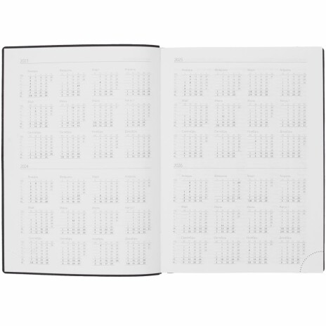 Ежедневник с гибкой обложкой выполнен из материала Latte, черный АА, и дополнен резинкой шириной 1 см, капталом и ляссе черного цвета.