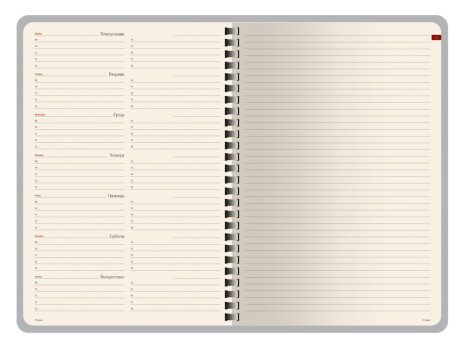 Деловые еженедельники Concept - это воплощение современного дизайна, в котором сочетаются практичные детали. Благодаря удобному формату slim-pocket еженедельник легко помещается в сумку. Еженедельник Concept в классической серой обложке формата А5. Практичный, привлекательный и приятный на ощупь материал обложки на протяжении всего срока службы сохраняет презентабельный вид. Уголки обложки имеют закругленную форму, по всему периметру сделана прострочка нитками в тон. Недатированный блок состоит из 128 страниц, укреплённых на пластиковом полускрытом гребне. На 21 странице размещена справочная информация на русском языке. День недели указан на русском и английском языках. Блок является сменным и вставляется внутрь обложки. С внутренней стороны обложка имеет вырубные отделения для визиток и кредитных карт, а также петлю для ручки на резинке. Для хранения чеков, записок и бумаг внутри расположен прозрачный пластиковый конверт.