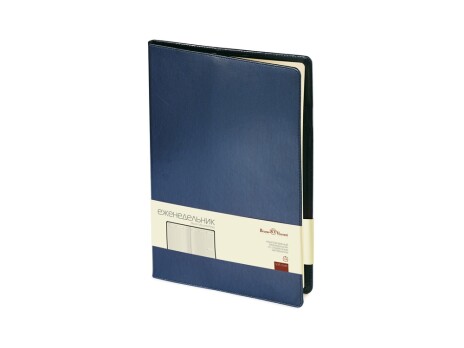 Строгий еженедельник портфолио выпускается в кожаной съемной обложке. По периметру обложки подходит строчка нитками в тон обложке. Металлизированный обрез блока окрашен под золото. Недатированный еженедельник формата А4 удобен для настольного использования. Блок для записей состоит из 128 страниц бежевой бумаги с плотностью 70 грамм. На 19 страницах размещен справочно-информационный блок с актуальными сведениями. Для размещения ручки предусмотрена кожаная петля.