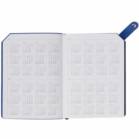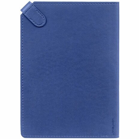 Ежедневник с гибкой обложкой и тонированным обрезом. Выполнен из материала Latte, синий НН, дополнен черным ляссе.