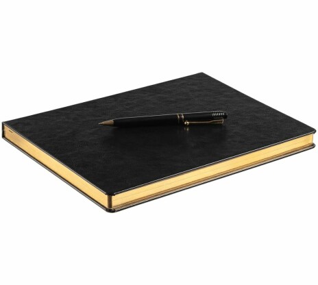 Статусный ежедневник с твердой обложкой и металлизированным обрезом, выполнен из материала Nebraska, черный АА.