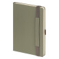 Элегантный недатированный ежедневник Alpha станет вашим надежным спутником в мире планирования и идей. Твердая, гладкая матовая обложка из высококачественной искусственной кожи с приятным на ощупь покрытием Soft Touch и легким эффектом пудры не только выглядит роскошно, но и устойчива к износу. Скругленные уголки придают ежедневнику изящный и утонченный вид.
