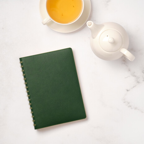 Внутренний материал обложки – Latte – бархатистый, мелкозернистый, однородного салатового цвета.