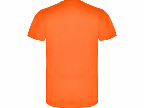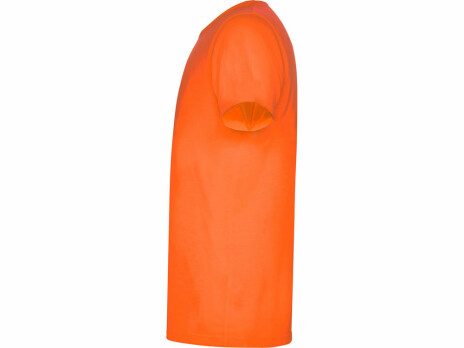 Футболка с коротким рукавом и круглым вырезом горловины. Модель в неоновых цветах выполнена из полиэстера, на ощупь напоминающего хлопок.