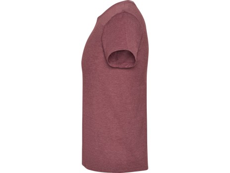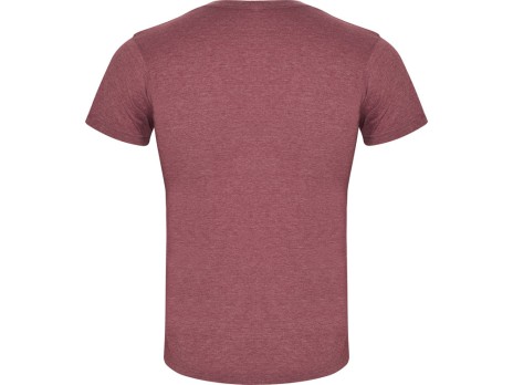 Футболка без боковых швов с коротким рукавом в меланжевом эффекте. Риб горловины 1х1 дополнительно укреплен двойной строчкой.