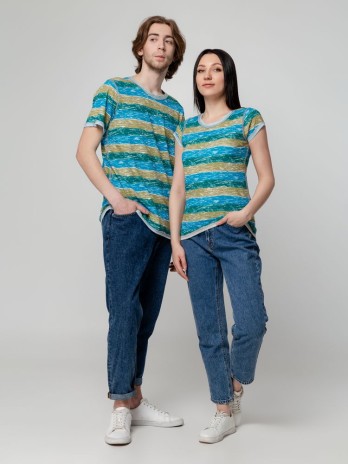 - Футболка мужская Rayet двусторонняя, голубая с зеленым