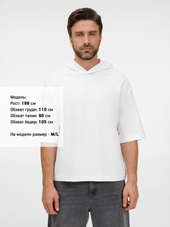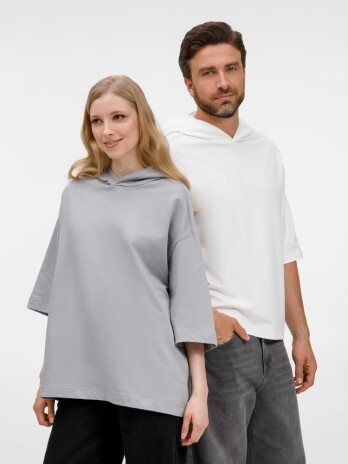 - Футболка оверсайз унисекс с капюшоном Neofit, молочно-белая