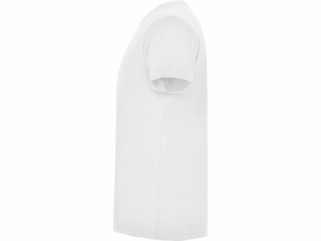Мужская футболка без боковых швов с коротким рукавом и V-образным вырезом горловины, отделанном рибом 1х1. Горловина и плечевые швы дополнительно укреплены тесьмой.
