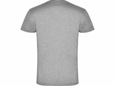 Мужская футболка без боковых швов с коротким рукавом и V-образным вырезом горловины, отделанном рибом 1х1. Горловина и плечевые швы дополнительно укреплены тесьмой.