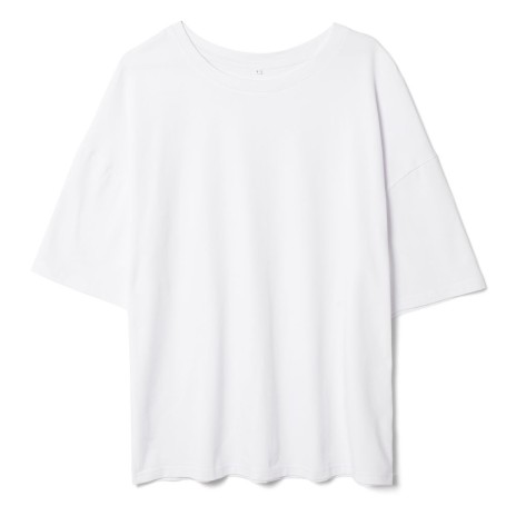 Объемная кроеная футболка с удлиненным рукавом из гребенного хлопка с эластаном не стесняет движений и создает модный расслабленный силуэт.