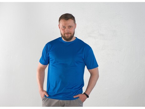 Удобная футболка из спортивной сетки. Легкая и дышащая ткань подходит для занятий спортом и активного отдыха. • Прямой силуэт, с боковыми швами, втачные рукава. • Отлично подходит для различных видов печати (шелкография, прямая печать). • Практичная и долговечная модель, неприхотлива в уходе. • Стабильное полотно – долго сохраняет форму и цвет, не садится.