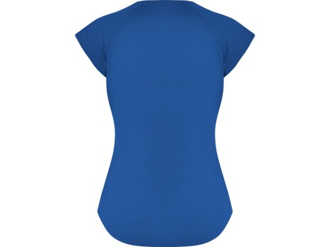 Спортивная женская футболка с коротким рукавом реглан. Вырез горловины V. Полотно из полиэстера на ощупь напоминающее хлопок. Приталенный силуэт.