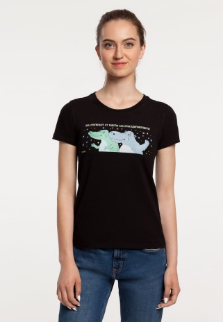 - Футболка женская «Крокодилобегемоты», черная