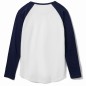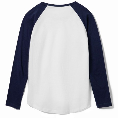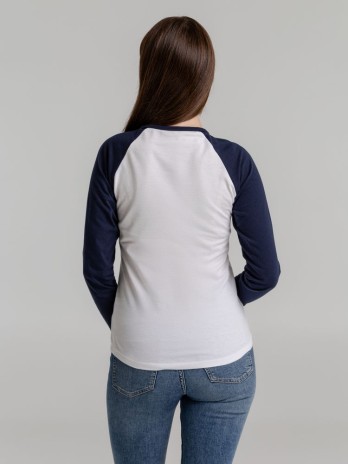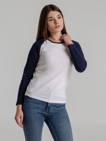 Женская двухцветная футболка с боковыми швами, длинным рукавом реглан и закругленным низом.