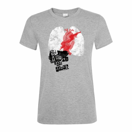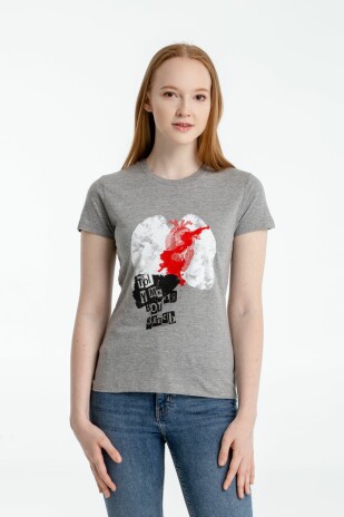 - Футболка женская «Ты у меня вот здесь», серый меланж