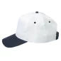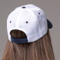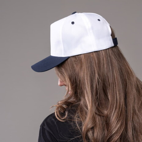- 5 клиньев,- без лобового шва,- 4 вышитых темно-синих люверса для лучшей вентиляции, декоративный темно-синий хольнитен на куполе бейсболки,- застёжка-липучка,- изогнутый жесткий козырёк из контрастной тёмно-синей ткани с четырьмя рядами декоративных отстрочек.Цвет Пантона козырька : близкий к 296C58 см - минимальный размер, с помощью застёжки его можно увеличить до необходимого.