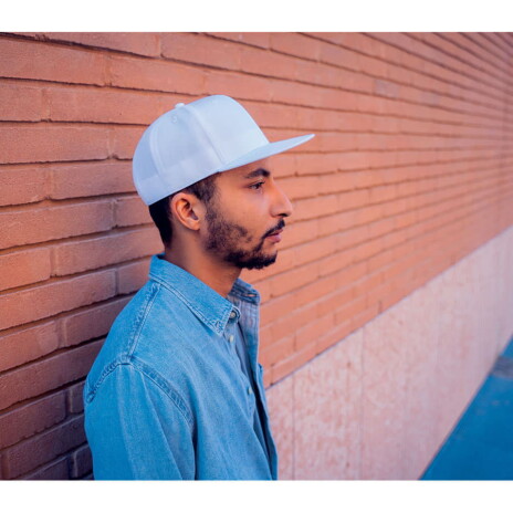 Жесткий снэпбэк JAMES из 100% сертифицированного переработанного полиэстера. - 6 клиньев, - 6 вышитых люверсов, - полная прострочка, - пластиковая застежка, - плоский козырек. Цвет, близкий Pantone WHITE