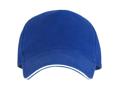 Бейсболка из 5 панелей с контрастным сэндвичем. Четыре вышитых вентиляционных люверса. Застежка на липучку.