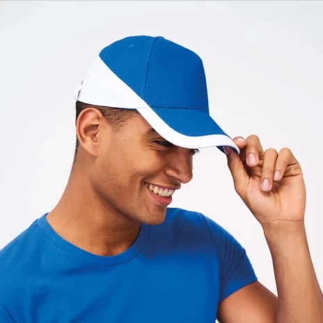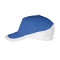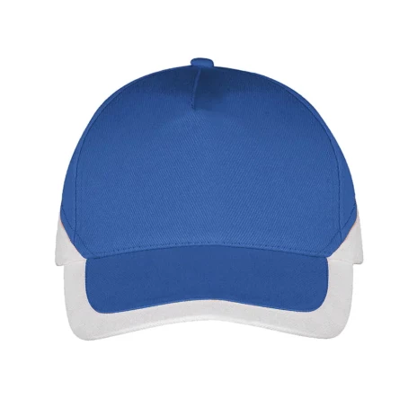 Двухцветная бейсболка BOOSTER без лобового шва с жестким козырьком "сэндвич". 4 вышитых люверса, регулируемая металлическая застежка. Цвет (синий), близкий к PANTONE 293C 7686C58,5 см - средний размер, с помощью застёжки его можно увеличить или уменьшить до необходимого.