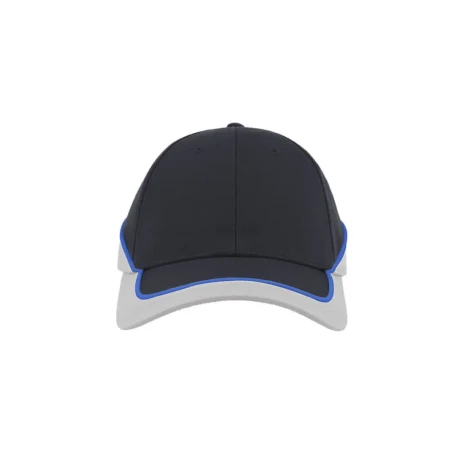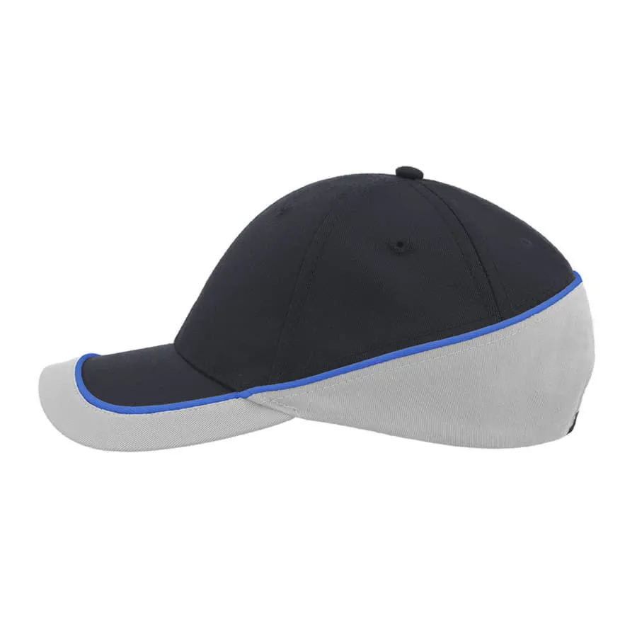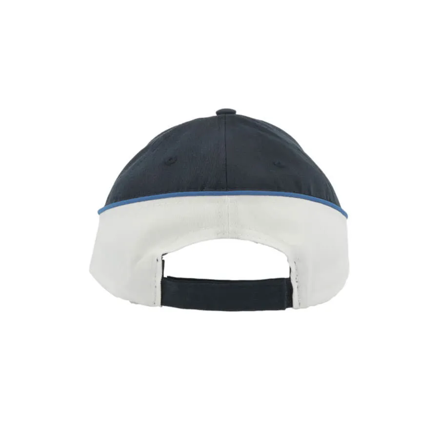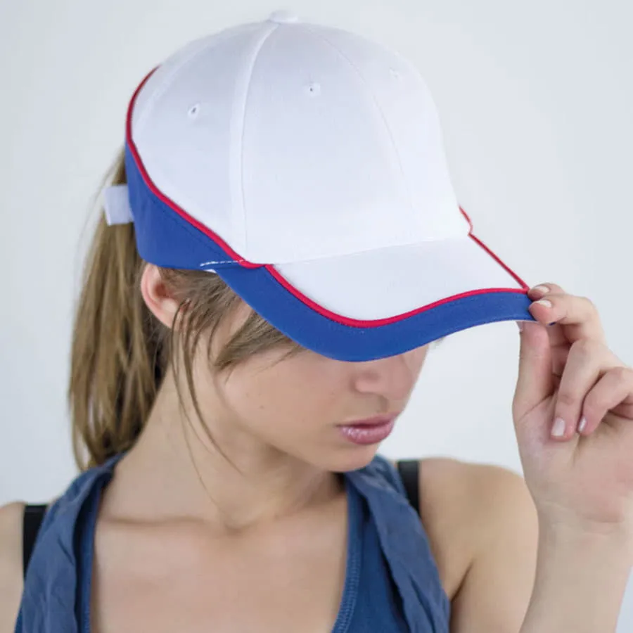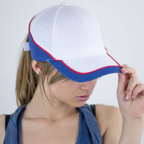 Стильная трехцветная бейсболка RACING: - 6 клиньев,- лобовой шов,- 6 вышитых люверсов для лучшей вентиляции,- застёжка на липучке,- изогнутый козырек, - контрастный кант по всему периметру кепки. Основной цвет, близкий к Pantone 433 C, дополнительный - Pantone White, кант – 7685 C.58,5 см - средний размер, с помощью застёжки его можно увеличить или уменьшить до необходимого.