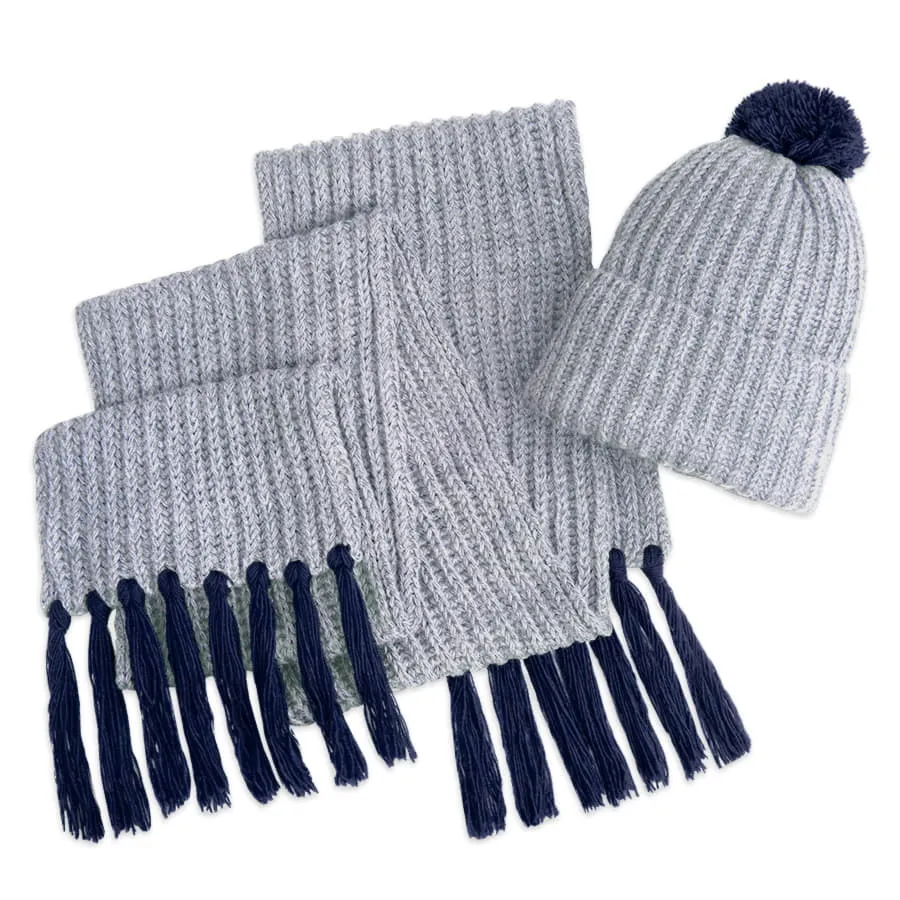 Мягкий, пушистый и уютный комплект из шарфа и шапки поможет согреться вам в холодное время года. Светло-серый цвет нейтрален и очень комфортен в носке. Благородый серый ассоциируется с компромиссом, спокойствием и стабильностью. Почувствуйте магическое влияние серого цвета в сочетании с яркой отделкой!Цвет помпона и кисточек близкий к Pantone 282C