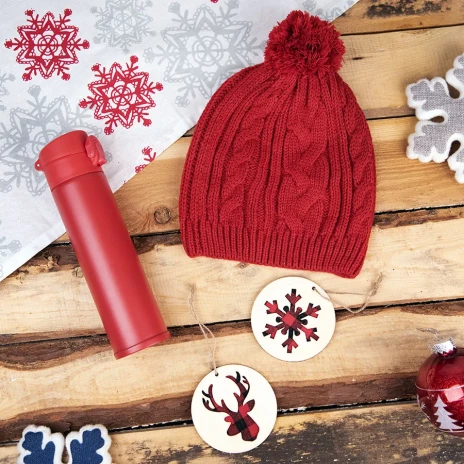 - Подарочный набор WINTER TALE: шапка, термос, новогодние украшения, красный