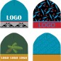 Шапка с вывязанным логотипом и индивидуальным рисунком в фирменной цветовой гамме.