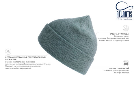 - Шапка вязаная RIO с отворотом из материала rPET/рециклированного полиэстера