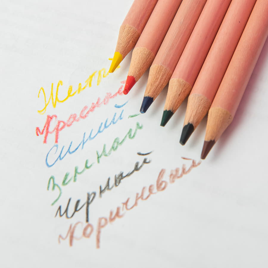 Набор из 6 цветных карандашей MИНИ в крафтовой упаковке с вырубкой. Круглый корпус из натуральной высококачественной древесины, не окрашен. Грифель у карандашей рисует очень мягко, его диаметр 3.0 мм. Отличный вариант для путешествий и раздатки. • Яркие цвета (коричневый, красный, желтый, зеленый, синий, черный) • Круглый корпус из высококачественной древесины • Прочный грифель 3.0 мм • Легко затачиваются